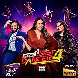 India's Best Dancer 4, also known as India's Best Dancer: Jab Dil Kare Dance Kar,[1] is the fourth season of the popular Indian reality TV series, India's Best Dancer. It premiered on 13 July 2024 on Sony Entertainment Television. The show is hosted by Jay Bhanushali and Aniket Chauhan,[2] with Geeta Kapoor, Terence Lewis, and Karisma Kapoor serving as the judges. Karisma Kapoor joined the judging panel this season, replacing Sonali Bendre, who was a judge in the previous season.[3]