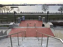 India Point was Providence's first port.[2] It was established in 1680 and flourished as a center of maritime trade for 250 years.[3] John Brown established his tea and spice trade with the East Indies here, which is what gives the park its name.[3] In August 1790, Brown took George Washington for a carriage ride to India Point[4] India Point Park remained an important trade center until the Great Depression.[3][2]
