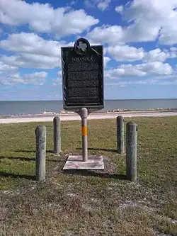 Indianola is a ghost town located on Matagorda Bay in Calhoun County, Texas, United States. The community, once the county seat of Calhoun County, is a part of the Victoria, Texas, Metropolitan Statistical Area. In 1875, the city had a population of 5,000, but on September 15 of that year, a powerful hurricane struck, killing between 150 and 300 and almost destroying the town. Indianola was rebuilt, only to be wiped out on August 19, 1886, by another intense hurricane followed by a fire. Indianola was designated a Recorded Texas Historic Landmark in 1963, marker number 2642.[1] The site is also home to a statue of René-Robert Cavelier, Sieur de La Salle.