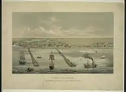 From its founding in 1846, Indianola served as a major port, and before the 1875 storm was second only to Galveston, Texas as Texas' primary port.[12] Charles Morgan established Indianola as a port of call for his gulf coast steamship line in 1849.[13]