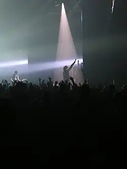Surprised by this development, Indochine decided to add a stop in Lima after their transatlantic debut in Montreal.[5] Following their appearance in Montreal on 6 April 1988, the band traveled to Peru. There, they performed before their Lima fans in four shows, on 29 and 30 April, and on 6 and 7 May 1988, at the Coliseo Amauta, reaching a total audience of over 40,000 people.[5][6][7] In that period the band sold some 400,000 recordings in Peru.[6]