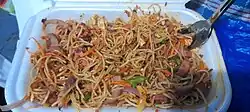 Indomie is an instant noodle brand produced by the Indonesian company Indofood.[1] Indomie has been mentioned as the largest instant noodle manufacturer in the world with 17 factories.[2] Over 19 billion packs of Indomie are produced annually, and exported to more than 80 countries.[3] Indomie has been produced mainly in Indonesia since its initial launch in June 1972. It has also been produced in Nigeria since 1995, Turkey since 2010 and Serbia since 2016. Since its introduction in the region in the 1980s, Indomie has become increasingly popular in African countries.[4]