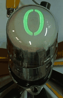 An animation of a single-digit nimo tube display the numbers 0–9