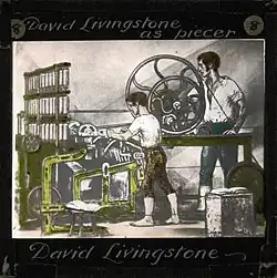 A lantern slide, showing later missionary David Livingstone (1813–73) as a cotton piercer around 1825