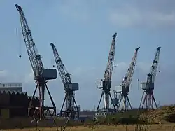Shipbuilding on Clydeside (the river Clyde through Glasgow and other points) began when the first small yards were opened in 1712 at the Scott family's shipyard at Greenock.[51] Major firms included Denny of Dumbarton, Scotts Shipbuilding and Engineering Company of Greenock, Lithgows of Port Glasgow, Simon and Lobnitz of Renfrew, Alexander Stephen and Sons of Linthouse, Fairfield of Govan, Inglis of Pointhouse, Barclay Curle of Whiteinch, Connell and Yarrow of Scotstoun. Equally important were the engineering firms that supplied the machinery to drive these vessels, the boilers and pumps and steering gear – Rankin & Blackmore, Hastie's and Kincaid's of Greenock, Rowan's of Finnieston, Weir's of Cathcart, Howden's of Tradeston and Babcock & Wilcox of Renfrew.[52] The biggest customer was Sir William Mackinnon, who ran five shipping companies in the nineteenth century from his base in Glasgow.[53] The Vulcan works, owned by Robert Napier and Sons were the first to start the production of large passenger iron ships in the 1840s.[54]