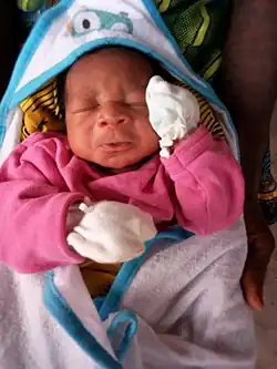 Clothing was responsible for an increased incidence of congenital hip dislocation (CDH) in Japanese infants. By custom, a diaper and clothing had been applied to the infants "with the legs in extension".[7] Before 1965, the incidence of CDH in infants was up to 3.5%, but a national campaign established in 1975 "to avoid prolonged extension of the hips and knees of infants during the early postnatal period" led to a reduction in the incidence of CDH in infants to 0.2% by the early 1980s.[8]