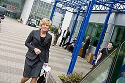 In 2009, Šimonytė was nominated to serve as finance minister in the second cabinet of prime minister Andrius Kubilius, replacing Algirdas Šemeta who had stepped down to become European Commissioner for Budget and Administration. Following her nomination, she was appointed by President Valdas Adamkus to serve in the office. Upon taking office, Šimonytė was tasked with recovering the Lithuanian economy in the aftermath of the Great Recession, with Lithuania's gross domestic product (GDP) having dipped 14.7% in 2009.[5][6] While in the position, Šimonytė became one of the faces of the austerity drive implemented by the government in order to improve the Lithuanian economy.[7]