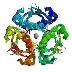 - ^ Blundell TL, Humbel RE (October 1980). "Hormone families: pancreatic hormones and homologous growth factors". Nature. 287 (5785): 781–7. Bibcode:1980Natur.287..781B. doi:10.1038/287781a0. PMID 6107857. S2CID 4325746.