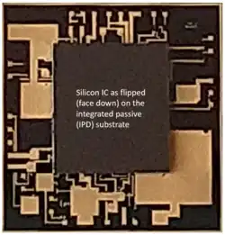 Integrated passive devices (IPDs), also known as integrated passive components (IPCs) or embedded passive components (EPC), are electronic components where resistors (R), capacitors (C), inductors (L)/coils/chokes, microstriplines, impedance matching elements, baluns or any combinations of them are integrated in the same package or on the same substrate. Sometimes integrated passives can also be called as embedded passives,[1][2] and still the difference between integrated and embedded passives is technically unclear.[3][4] In both cases passives are realized in between dielectric layers or on the same substrate.