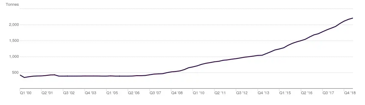 Gold reserves of the Russian Federation 2000 - 2018