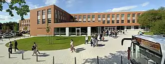 The International School of Hamburg, known to the school community as ISH, is a private international school in the West of Hamburg. ISH combines the IPC (age 3-10), the IB Middle Years Programme (MYP) (age 11-16), the IB Career Related Programme (CP) (Age 16-19), and the IB Diploma Programme (age 17-19).[1] The International School of Hamburg was founded in 1957 as the first international school in Germany. ISH is a non-profit organization and remains the only Council of International Schools-accredited organisation in Hamburg. In 2010, ISH moved to its current, purpose-built campus, at Hemmingstedter Weg in Hamburg-Osdorf. An extensive expansion was built in 2015. The school currently has a combined enrolment of approximately 760 students aged 3 to 19 from over 55 countries.