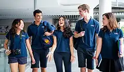 In accordance with the national law of Malaysia, ISKL institutes a mandatory uniform policy. The uniform consists of a collared shirt with the school logo on the front in different colours for each division of the school. Elementary School has royal blue shirts, Middle School has light blue shirts and High School has navy blue and white shirts. Boys may pair this with shorts and pants in dark blue, while girls may wear shorts, skirts or pants in the same dark blue. When wearing outer layers, students are encouraged to purchase them in dark blue or white as part of the uniform. They also may buy pants or shorts from other companies that are similar to the school wear.[34]