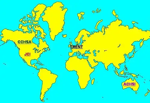 Different holistic accreditation schemes are sourced out of different parts of the world, for example in hospitals there is (see map):