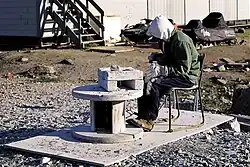 Contemporary Inuit art and handicrafts did not come about before the late 1950s as important resources for added value. soapstone sculptures, artistic drawings, hangings and tapestries (the latter mainly in Arviat, Baker Lake and Pangnirtung), attire, ceramics and dolls are providing a basic livelihood to a large number of Inuit artists of all ages today, just like hunting and fishing.