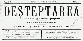 Front page of Deșteptarea