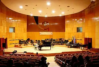 In 1968 the two sections split, and the Ion Vidu Music High School moved to the headquarters designed by the couple of architects Hans and Aurelia Fackelmann at 12 Cluj Street, where it still functions today.[1] A year later, the 340-seat Mihai Perian Concert Hall was inaugurated, considered by some specialists to be "the hall with the best acoustics in Southeastern Europe".[3] In 1977, the two schools merge again. With the Revolution of 1989, the two separated definitively, and a new section was added to the Music High School, the choreography section, named after its founder, choreographer Ștefan Gheorghe. In 2000, 50 years after the establishment of the first music school, the Ion Vidu Music High School was transformed into the Ion Vidu National College of Art, where the two existing sections, music and choreography, will function. A third section – theater – was created later by film director Diogene Bihoi.[2]