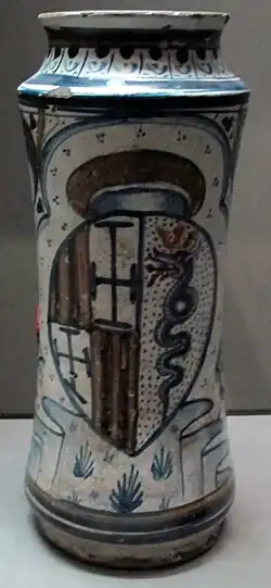 Neapolitan albarello with arms of Alfonso II of Naples and Ippolita.