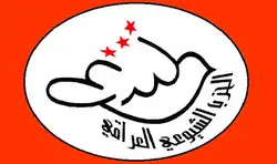 The Iraqi Communist Party (Arabic: الحزب الشيوعي العراقي al-ḥizb aš-šiyūʿī al-ʿirāqī; Kurdish: حیزبی شیووعیی عێراقی, romanizedḥizbī šiyūʿītē ʿirāqī)[20][21] is a communist party and the oldest active party in Iraq. Since its foundation in 1934, it has dominated the left in Iraqi politics. It played a prominent role in shaping the political history of Iraq between its foundation and the 1970s. The Party was involved in many of the most important national uprisings and demonstrations of the 1940s and 1950s.[22] It suffered heavily under the Ba'ath Party and Saddam Hussein but remained an important element of the Iraqi opposition and was a vocal opponent of the United Nations sanctions imposed on Iraq after the Gulf War of 1991. It opposed the United States invasion of Iraq in 2003 but since then has participated in the new political institutions. It received little support in the Iraqi general elections of 2005. The party gained some seats in each province in which the 2013 Iraqi governorate elections were held.[23] The party joined the newly established Sairoun Alliance in the 2018 parliamentary elections, who gained the highest number of votes and a total of 54 seats in the Iraqi parliament.
