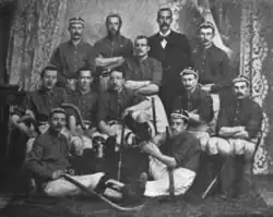 The Irish Hockey Union was founded on 6 February 1893 and on 26 January 1895 Ireland played in the first ever international field hockey match when they defeated Wales 3–0 in Rhyl.[3][4] In 1895 Ireland also played England for the first time. This was also England's first ever international field hockey match. England's first four international matches, in 1895, 1896, 1897 and 1898, were all against Ireland.[5][6][7] By the start of the First World War, Ireland had played 55 international matches, mostly against Wales, England or Scotland. This saw 605 individuals represent Ireland, at least 164 of whom were brothers.[8] Amongst the most notable set of brothers were the Petersons, including Jack and Walter. In 1904 the Peterson brothers were members of the Ireland team that won the Triple Crown. Ireland won the title after defeating Wales 4–2 away and England 3–2 at home. As well as Jack and Walter, the team also included their brothers Nicholas, William and Cecil. Another brother, Herbert made two Ireland appearances between 1900 and 1902. In total the brothers won 66 caps between them.[9][10]