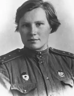 Irina Viktorovna Dryagina (Russian: Ирина Викторовна Дрягина; 31 March 1921 – 9 June 2017) was a botanist and veteran of the Second World War. During the conflict, she served as a squadron commissar in the 46th Guards Night Bomber Aviation Regiment until the post of squadron commissar was abolished, after which she transferred to the post of assistant chief of the political department for the Komsomol of the 9th Guards Fighter Aviation Division, commanded by Alexander Pokryshkin.