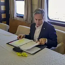 US secretary of state Antony Blinken on the train to Kyiv