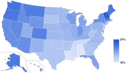 In the late 2010s, 21% of registered voters were religiously unaffiliated; they are considered to be the largest "religious" voting block.[85][86]