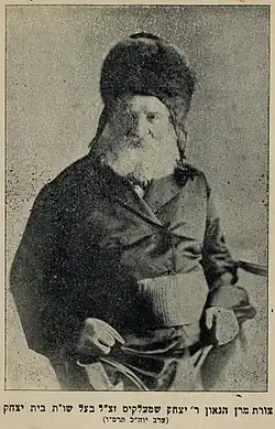 Rabbi Yitsḥak Yehudah Schmelkes (1827–1905), a talmudic scholar of Galicia, was born in Lemberg (Lviv, Ukraine), the son of Ḥayyim Samuel Schmelkes, claiming descent from Eleazar b. Samuel Schmelke Rokeaḥ.[1] He was the head of the rabbinical court in Lviv from 1869-1893.[2] His Beit Yiẓḥak (6 vols., 1875–1908), on the four parts of the Shulḥan Arukh, was widely acclaimed.[2] His opinion on halakhic questions was sought by many prominent contemporary scholars.[3]