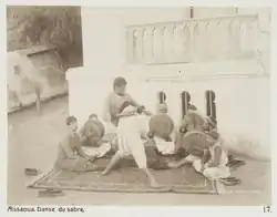 [O]ne of the Tunisian soldiers ... seized a sword and began to lacerate his stomach. The blood flowed freely, and he imitated all the time the cries and movements of the camel. We soon had a wolf, a bear, a hyena, a jackal, a leopard, and a lion.... A large bottle was broken up and eagerly devoured.... Twenty different tortures were going on in twenty different parts of the hall."[3]