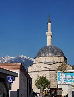 The Ishak Çelebi Mosque (Macedonian: Исак џамија, romanizedIsak džamija, Albanian: Xhamia e Isak Çelebiut, Turkish: İshakiye Camii) is the largest mosque in Bitola, North Macedonia.[1] It is situated along the north bank of the Dragor River. This area was known as Bit-Pazar in the quarter of Emir Bey or Eyne Bey, also known as Ishak Çelebi mahalle.[1]