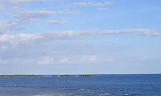 They are oriented in a southwest-to-northeast axis and are separated from each other by approximately 120 feet (37 meters).[9] The northernmost, and the one closest to the Puerto Rico mainland shore, sits at a distance of approximately 600 feet (180 meters), of 0.12 mi (0.19 km), southwest from the mainland Puerto Rican shore in the area of Caleta de Cabullones (Cabullon Point), with the furthestmost extending 0.43 mi (0.69 km) from the mainland.[10][11][12] The closest populated point on the mainland is Hacienda Villa Esperanza, also known as Quinta Esperanza, located in barrio Vayas. The islands have an area of just 0.0019 sq mi (0.0049 km2) (2.89 cuerdas)[13] (one cuerda equals 0.97 acres[14]).