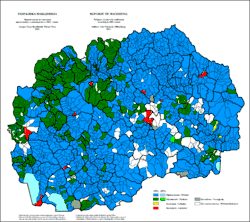 Religious structure of Macedonia by settlements 2002. Muslims (green), Orthodox Christian (blue)