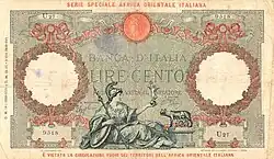 In Italian East Africa, Fascist Italy sought to neutralize any educational institutions which provided instruction to Africans beyond the level expected by Fascist ideology.[78] In particular the secondary education network in the Ethiopian Empire had prepared and enabled a relatively small but significant amount of Ethiopians to study abroad at universities in Europe. As a result of this policy and state-sponsored mass murder, post-World War II Ethiopia found itself impoverished of skilled workers due to the very limited and propagandistic education provided to its non-Italian inhabitants under Mussolini's rule.[80] During World War II, few African natives displayed any loyalty to the Fascist state that the state's schools had so fervently tried to instill.[81]