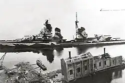Gorizia entered the dry dock in La Spezia to begin repairs on 4 May; she was still under repair when Italy surrendered to the Allies in September. The ship's commander initially ordered the caretaker crew to flood the drydock and scuttle the ship when German troops occupied the port, but cancelled the order when it became clear the ship would be of no use to the Germans anyway. The Germans later moved the ship out of the dock, anchored her in the harbor, and abandoned her. On the night of 21–22 June 1944, British and Italian frogmen used Chariot manned torpedoes to infiltrate the harbor to sink Gorizia and Bolzano to prevent the Germans from using them as blockships; while the commandos did sink Bolzano, they were unsuccessful with Gorizia. She remained afloat and heavily listing in April 1945, when Allied forces liberated La Spezia. Judged to be too badly damaged to repair, the postwar navy decided to discard the ship. She was accordingly stricken from the naval register on 27 February 1947 and broken up for scrap.[7]