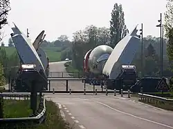 The Itinéraire à Grand Gabarit is a water and road route that has been created in order to allow the transport of the outsize structural sections of the Airbus A380 airliner from their point of manufacture to Toulouse for final assembly. The route was largely created by modifying existing waterways and public roads, with the addition of some new road sections. Specially constructed ships, barges and road vehicles carry the aircraft parts on the route,[1] as traditional transportation methods proved unfeasible. The parts are not handled directly.[2]