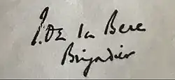 In 1913, de la Bere joined the British Army and was commissioned as a second lieutenant into the Dorsetshire Regiment. During the First World War he served two spells of duty in France and Belgium in 1914–15 and 1915–16, including a period attached to the Connaught Rangers, and was wounded. In 1916 he was seconded in the rank of captain to the Royal Flying Corps.[2][3] In January 1918 de la Bere received a special staff appointment as a Conducting Officer in France, escorting visitors to the armies, and became an Assistant Press Officer in May 1918, retaining that appointment in the British Army of the Rhine after the Armistice with Germany.[3]