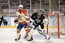 Campbell in net for the Ontario Reign during the 2017 AHL Outdoor Classic
