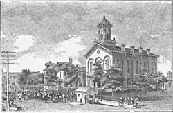 Established in 1817,[5] residents named the town after Andrew Jackson, a hero of the War of 1812, and an eventual president of the United States.[6] The community grew slowly, having only 297 inhabitants in 1840. In 1846, Jackson had four churches, about seven stores, and a single newspaper office. Over the next 40 years, the town grew quickly, attaining a population of 3,021 people in 1880. By 1880, two railroad lines passed through the community, helping to spur economic and population growth. In 1886, two newspaper offices, eight churches, and two banks existed in Jackson. The largest businesses in the town were the Star Furnace Company and the Globe Iron Company, with 30 employees apiece. Both firms used local coal and iron ore deposits to make iron products.