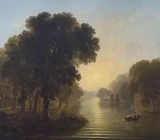 James Arthur O'Connor was born 15 Aston's Quay, Dublin – the son of an engraver and printer, William O'Connor.[1] O'Connor would become a distinguished, self taught landscape painter focusing on small but intense landscapes of wild scenery.[2] He received just a art few lessons from William Sadler. In 1813 he travelled to London with Francis Danby and George Petrie.[3] O'Connor exhibited at the Royal Academy in 1822. O'Connor visited France, Belgium, the Netherlands, and the Rhineland. He died poor, in Brompton, London, 7 January 1841.[4] O'Connor was married – his wife's name was Anastatia.[5]