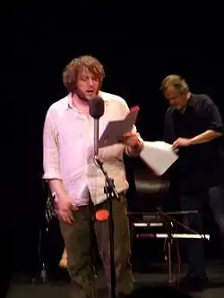 ![]() James Bachman recording the BBC Radio 4 comedy pilot Zoom, 6 May 2008. | |