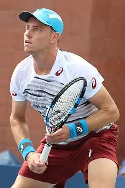 Duckworth lost to Alexander Zverev in the first round of Wimbledon. In July Duckworth won his first match on the ATP World Tour in over 18 months at the 2018 Citi Open.[20] Duckworth lost to Andy Murray in the first round of the US Open.[21] Immediately after the US Open, Duckworth qualified for and won the Cary Challenger. This was his first title in 2 years.[22] Duckworth ended 2018 with an ATP singles rank of 234.