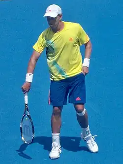 As with the previous three years, Duckworth commenced his season at the 2015 Brisbane International after being awarded a wild card. In round 1, he caused an upset, defeating world no.21 Gilles Simon, 6–2, 6–2. He then defeated Jarkko Nieminen reaching the quarter-finals in an ATP Tour event for the first time in his career.[10] But then he lost to Roger Federer in straight sets 0–6, 1–6.[11] Duckworth was given a wild card into the 2015 Australian Open, where he defeated Blaž Kavčič in round 1 but lost to the 24th seed Richard Gasquet in the second round. In February, Duckworth was the no.1 seed at the Delhi Challenger and Kolkata Challenger. He lost in round 2 at Delhi and lost in the final of Kolkata to Radu Albot. At Indian Wells, Duckworth qualified and defeated Dominic Thiem in round 1 before losing to Fernando Verdasco, as a result of his performance, he secured a top 100 ATP ranking for the first time in his career on 23 March 2015.[12] Duckworth then qualified for the 2015 Miami Open and reached the second round where he again lost to Verdasco. He then returned to the challenger tour playing in San Luis, Anning and Bordeaux where he lost in the semi-finals, quarter-finals and second round respectively. Duckworth then played in the Tour 250 event in Nice where he defeated lucky losers Frances Tiafoe and Quentin Halys to reach his second ATP tour quarterfinal of 2015 and his career. He then lost to Borna Ćorić in straight sets. At Wimbledon, Duckworth came back from 2 sets to 0 down again Malek Jaziri to win in five sets, posting his first win at Wimbledon.[13] He lost to compatriot Sam Groth in round 2.[14] At the US Open, Duckworth lost in round 1 to Hyeon Chung in straight sets. He played a number of challenger events to finish the season making the quarter finals in Ho Chi Minh, Ningbo and Knoxville. Duckworth ended the year with a ranking of World No. 120.
