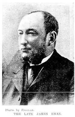 James Ewan J.P. ((1843-07-18)July 18, 1843 – (1903-08-01)August 1, 1903) was a Scottish-born Australian financier, mercantilist, and philanthropist. He held a number of high-profile financial positions, including being a long time partner in John Frazer and Co., Chairman of the Australia Steam Navigation Company, City Bank of Sydney, and the United Insurance Company. Ewan made considerable philanthropic donations to the Sydney Hospital, Benevolent Society, Presbyterian Church, the Women's Guild, and the Nepean Cottage Hospital (now known as the Nepean Hospital).[1]