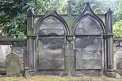 He died in St Andrews (possibly of syphilis) and is buried with his aunt Susan Ferrier in St. Cuthberts Churchyard in Edinburgh just to the north-east of the church.