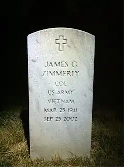 2. ^ "Burial Detail: Zimmerly, James G. (Section 67, Grave 1251)". ANC Explorer. Arlington National Cemetery. (Official website).