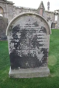 He died on 2 June 1791. He is buried in the graveyard of St Andrews Cathedral. The grave lies to the south-west of the central tower.
