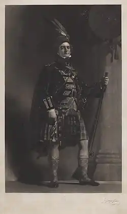 In 1817, Alexander Macdonald, a member of Clan Macdonald of Clanranald, engaged Graham to design the Glenfinnan Monument, a stone tower to commemorate the Highlanders who fought on the side of Charles Edward Stuart during the Jacobite rising of 1745.[6] The tower was completed shortly after Macdonald's death but debts were left outstanding to Graham.[6] Graham had designed other buildings for Clan Macdonald including Arisaig Church (1809) and Arisaig Glen House (since demolished).[6][7]