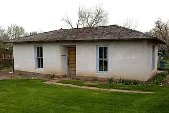 James H. Baugh (February 6, 1832–August 15, 1891), born in Missouri, was a Colorado pioneer. In 1859, he followed the Pike's Peak Gold Rush to present-day Colorado, which was in Kansas Territory at the time and became Colorado Territory in 1861.[1][2] Baugh homesteaded 160 acres near Clear Creek in present-day Wheat Ridge, Colorado where he operated a farm and an orchard. He built irrigation ditches from Clear Creek for his potato, oat, and wheat fields and orchard trees. Baugh was an active community member and political figure, which helped the town grow. Two of his homes, Pioneer Sod House and the James H. Baugh House, are listed on the National Register of Historic Places.