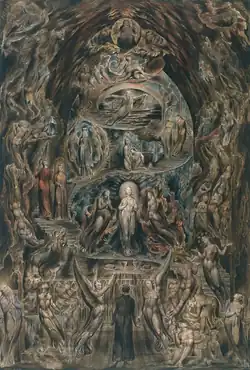 Hervey had a lasting impact on art through William Blake, who was an admirer of his. Blake painted Epitome of James Hervey's Meditations among the Tombs between 1820 and 1825.[4] Hervey is also mentioned in Blake's work as one of the holy guards to the 'four-fold gate', and his influence on Blake's poem The Tyger has also been noted.[5]