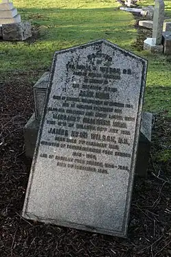 He retired in 1897 and was replaced at Barclay Church by Rev Dr W. M. Clow. He was permitted to stay at Barclay manse at 1 East Castle Road after his retirement.[6] He died at the manse on 6 December 1903,[7] and is buried in Morningside Cemetery, Edinburgh. The grave lies near the western end of the main east–west path, on its north side. The grave is currently (2019) toppled.