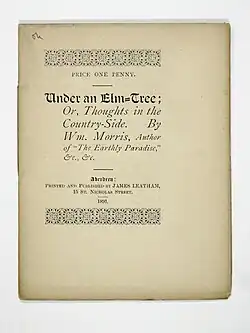 cover of an 1891 penny pamphlet by William Morris published in Aberdeen by James Leatham